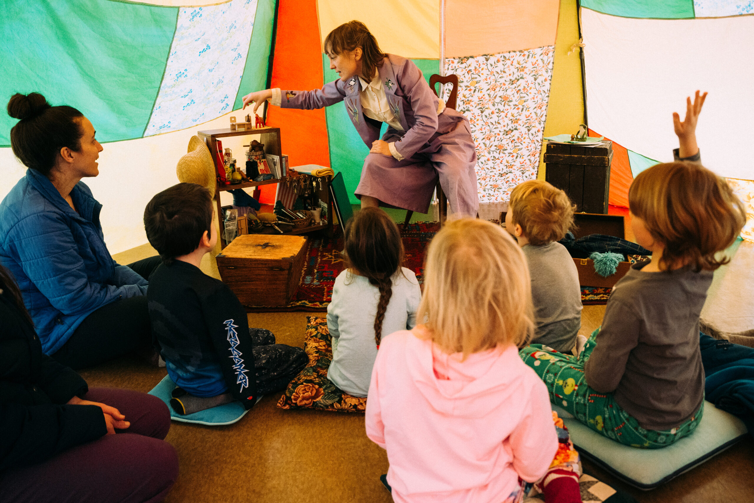 Guided by Lupinder—the Bog’s expert in Lost and Found—and her no-nonsense associate Ms. Grismunda, children and grownups alike are drawn into a participatory tale of rediscovery, memory, and magic on a miniature scale. From runaway mittens to forgotten songs, each item in Lupinder’s Tent has a mystery, and each audience member becomes a helper, a seeker, a finder.