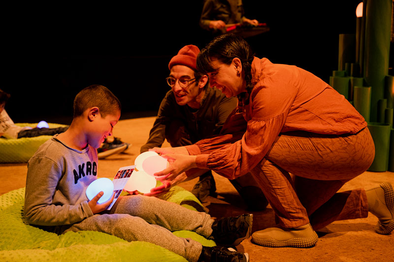 In an intimate and welcoming atmosphere, the performance offers a ratio of one performing artist per child to facilitate numerous personalized interactions with audience members and thus can only accommodate a very small number of spectators at a time.