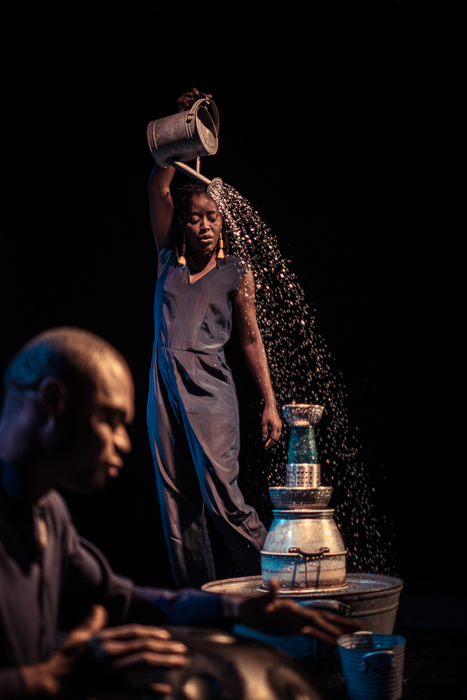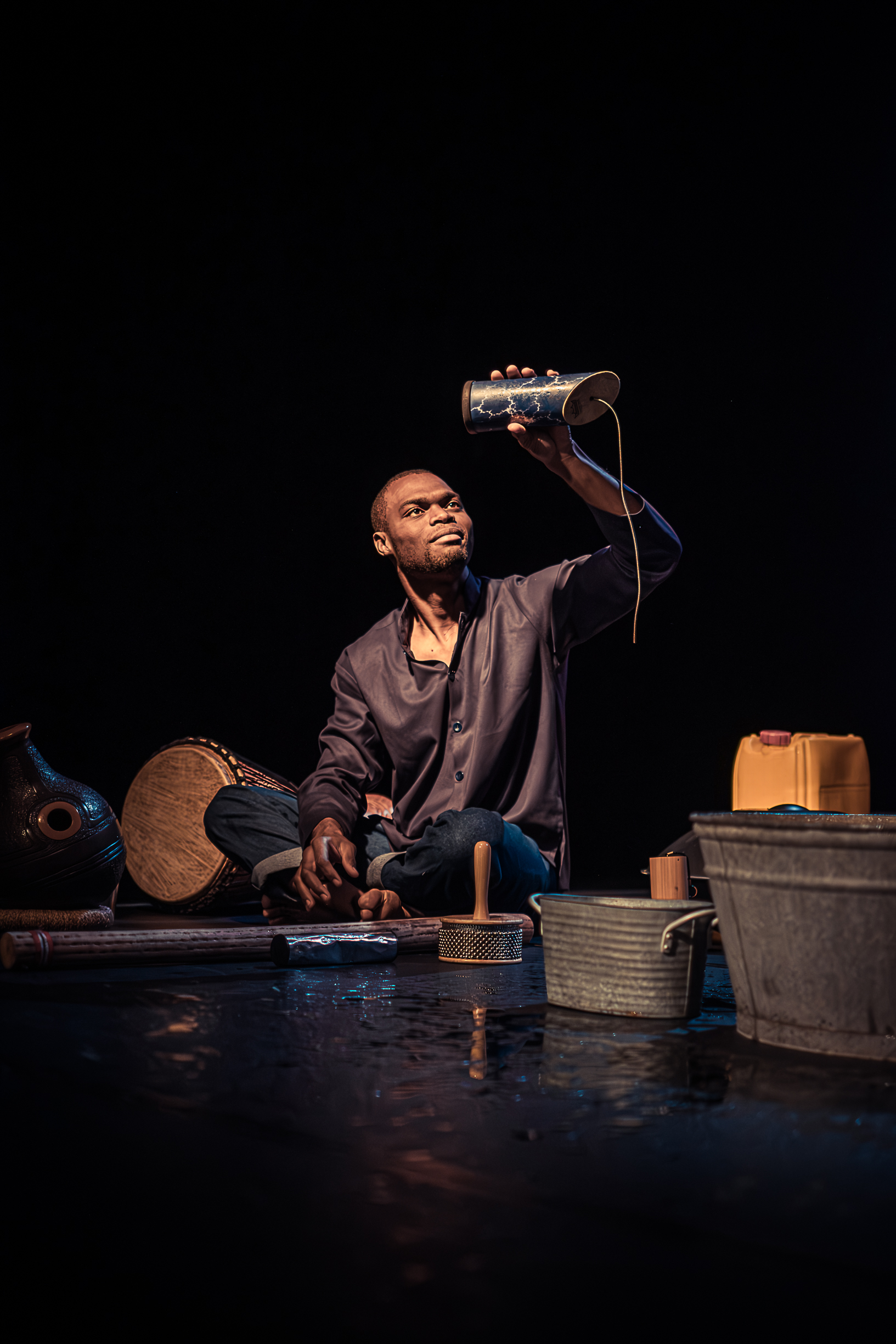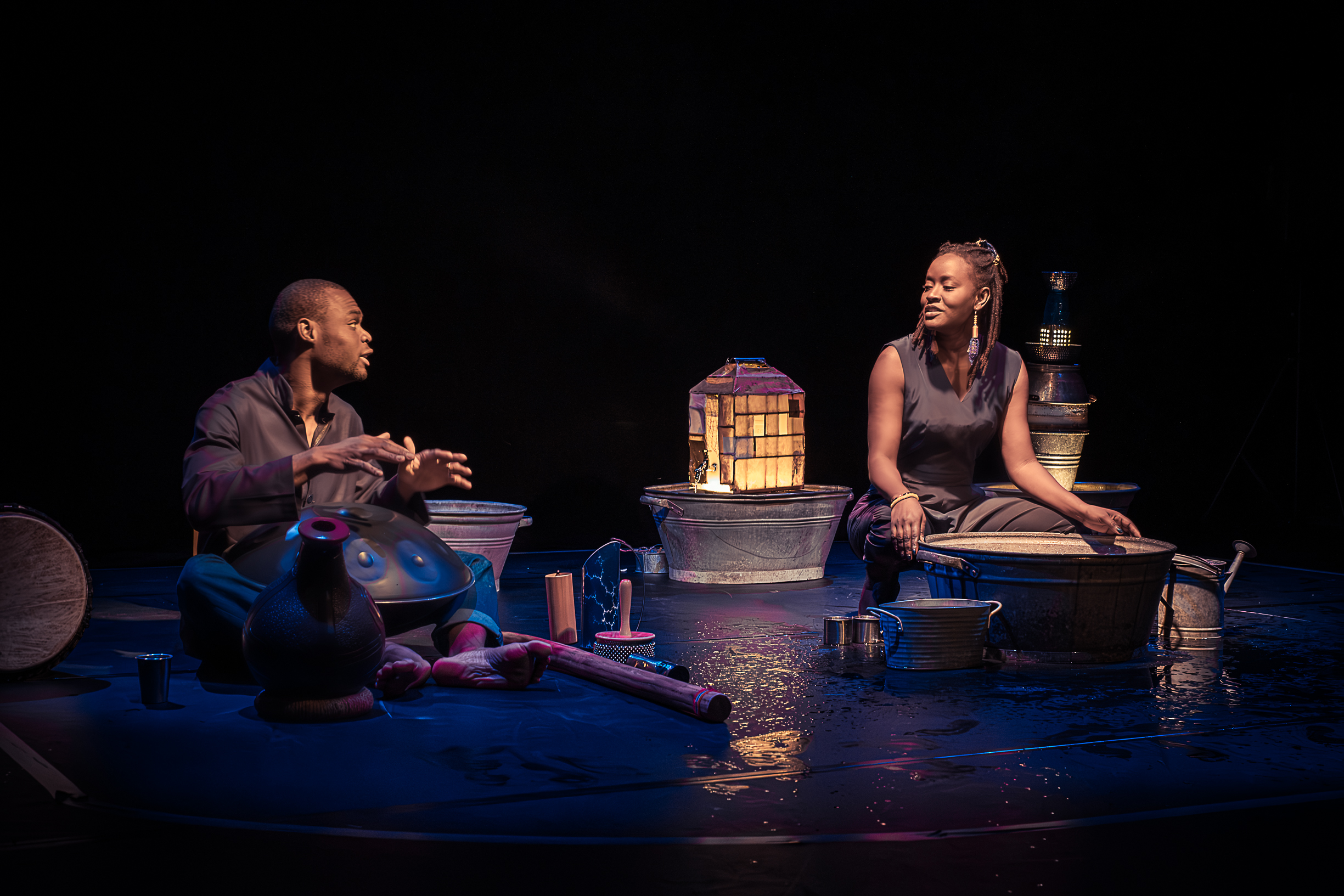Walangaan tells the story of the water cycle – The water which quenches us, flows on our skin, splashes, cleanses, sings, rocks, and gushes. A Senegalese singer and percussionist go upstream, reveal its sounds and play with their voices and their bodies, from the drop to the downpour, from the splash to the waterfall.